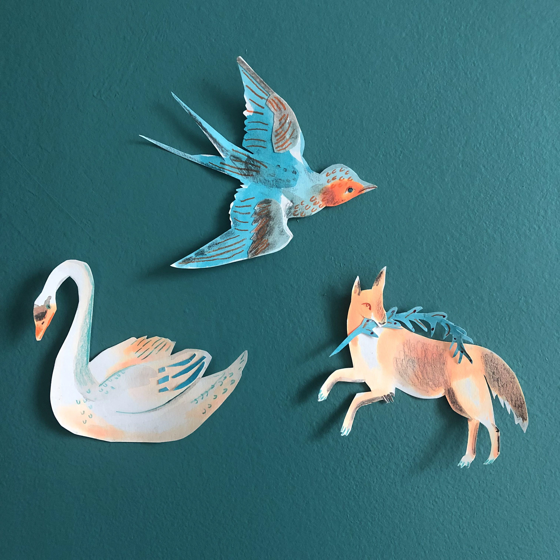 Watch the fox, swallow and swan being made on